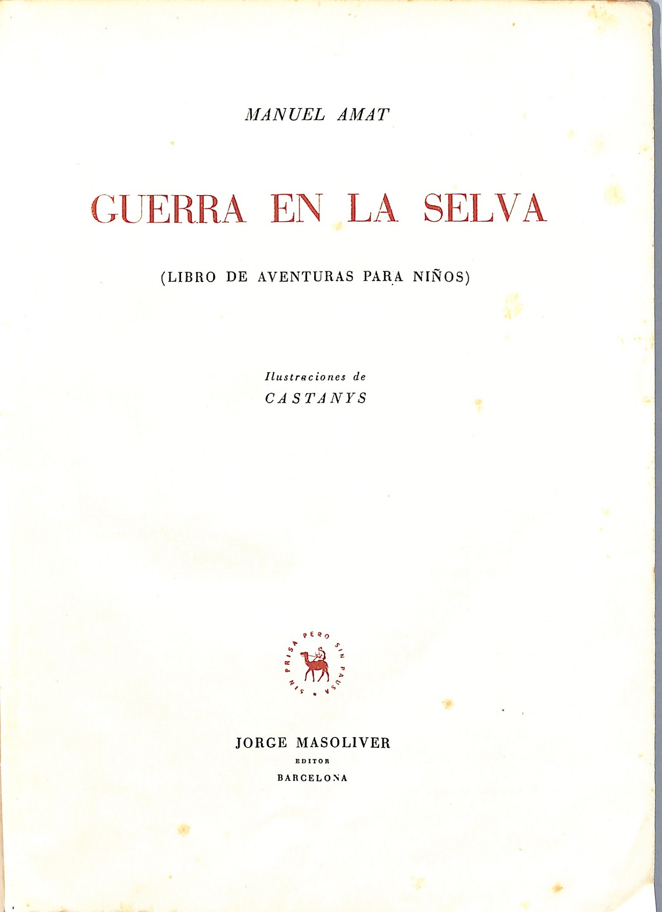 Amat, Manuel Editor Jorge Masoliver Ref. 9999900066296 Ver otros productos de la misma colección Ver otros productos del mismo autor