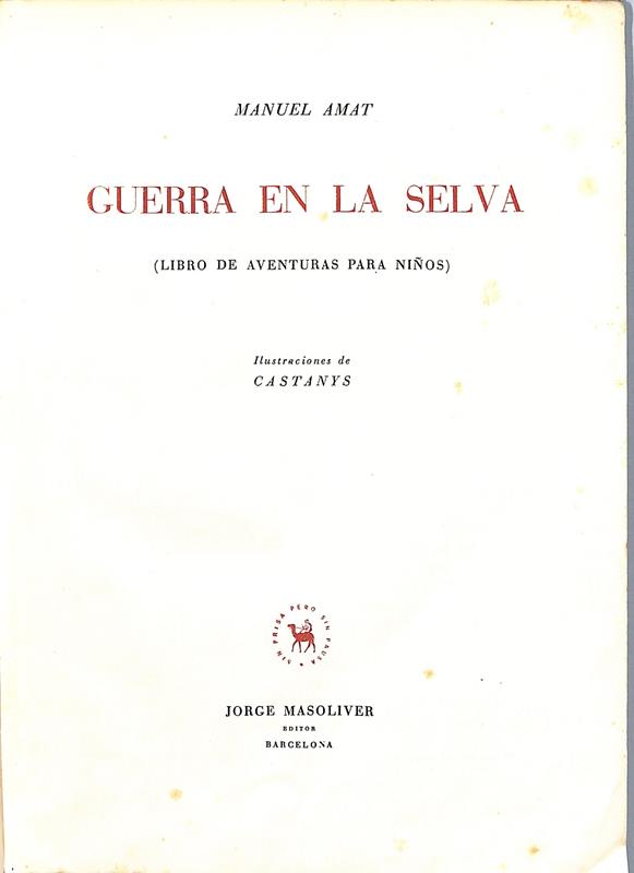 Relato de aventuras en la selva protagonizado por animales, narrado con estilo de fábula y tono moralizante. Ilustrado con impactantes dibujos de Castany, tanto en tinta negra como roja, que representan escenas de la historia con gran expresividad gráfica.